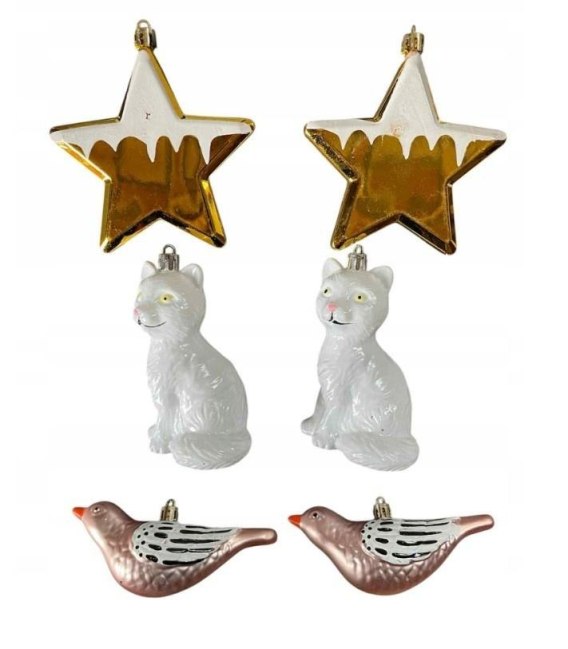 Bombki na choinkę 6szt Gwiazda, Kot, Ptaszek