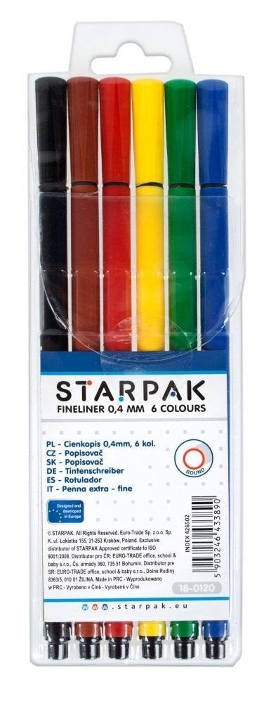 Cienkopisy 6 kolorów okrągłe 0,4 mm