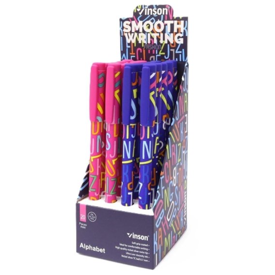 Długopis z zatyczką Fashion Alphabet nieb. (20szt)