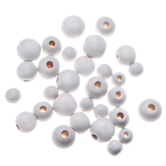 Drewniane koraliki, kulki białe 30szt