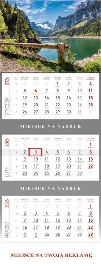 Kalendarz 2026 ścienny trójdzielny Górskie jezioro
