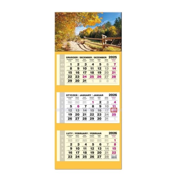 Kalendarz 2026 trójdzielny LUX wypukły Krajobrazy