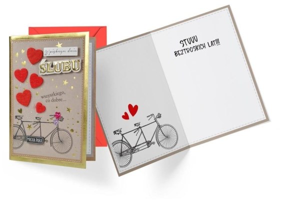 Każda kartka w kolekcji Futrzaki to szalona przygoda - kolorowa i niepowtarzalna, super w dotyku, piękna wizualnie, nie ma nic podobnego na rynku. Kartki-Futrzaki wyróżniają się połączeniem brązowego papieru kraft i bogatego zdobienia. Nowością są filcowe dodatki - wybrane elementy grafiki są wycięte z kolorowego materiału i naklejone w artystycznej aranżacji. Poza tym kartki zdobią doklejki przestrzenne, folie metaliczne i inne dodatki dekoracyjne. Wnętrze karnetu do zawsze atrakcyjna grafika i tekst życzeń na dodatkowej, kolorowej wklejce. Kartki mają w komplecie dopasowaną kopertę. Cechy szczególne: wielkość: B6, 16.6 x 11.7 cm złożony, zdobienie: elementy filcowe, doklejki przestrzenne, przeszycia, złota lub holograficzna folia, tłoczenia, guziczki, dekoracje biżuteryjne itp. - w zależności od wzoru, wnętrze: kolorowa wklejka, proste życzenia w środku, w komplecie: dopasowana kolorystycznie koperta.