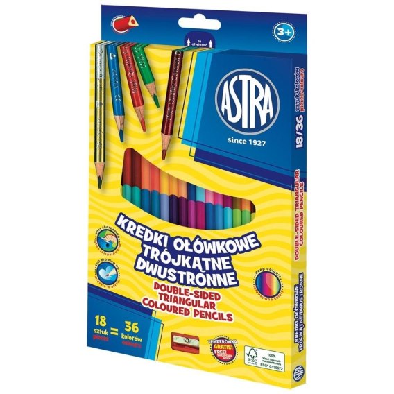 Kredki ołówkowe trójkątne dwustr. 18=36 kol. ASTRA
