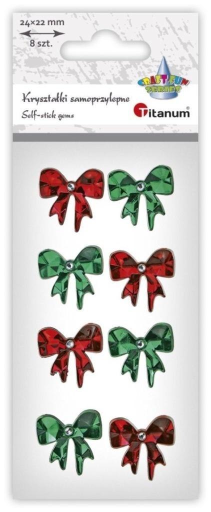 Kryształki samoprzylepne kokardki 24x22mm czerwone, zielone 8szt.