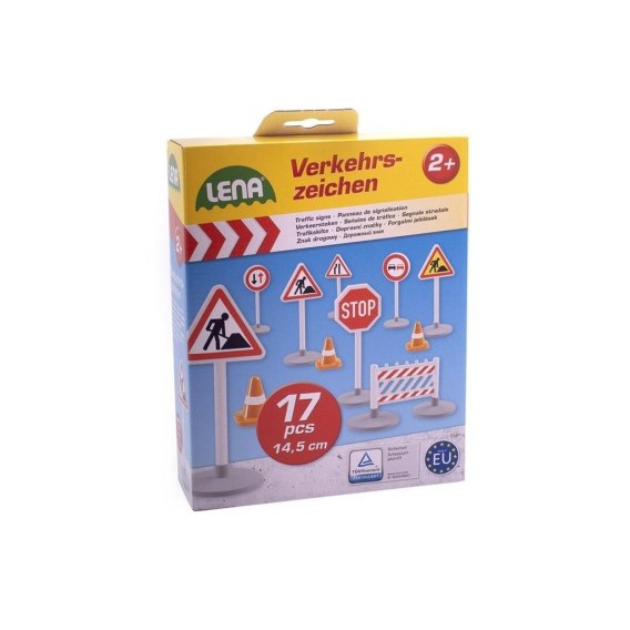Znaki drogowe drogowskazy LENA 17 elementów to zestaw wysokiej jakości akcesoriów drogowych idealny do zabawy. Zestaw składa się z 17 kolorowych elementów, w tym znaków drogowych, barierek i pachołków. Każdy element ma około 16 cm wysokości, co czyni je odpowiednimi dla wszystkich aut.