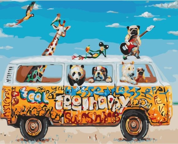 W skład zestawu wchodzi podobrazie z naniesionymi numerami w określonych polach. Każdy numer odpowiada określonemu kolorowi farby. Pola z numerami należy pomalować farba według załączonego schematu. W ten sposób powstanie kolorowy obraz, który można powiesić na ścianie. Opakowanie zestawu umożliwia stworzenie tekturowej sztalugi, na której można umieścić podobrazie do malowania.