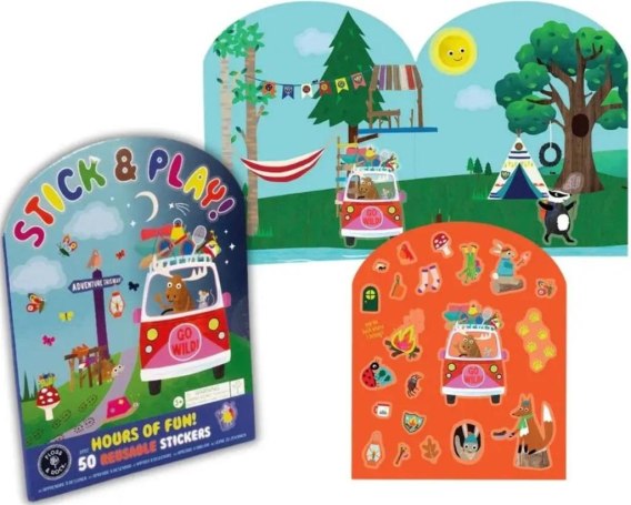 Zestaw Naklejek Wielokrotnego Użytku z planszami to świetna zabawa i nauka jednocześnie. W skład zestawu wchodzi ponad 50 zabawnych naklejek, w tym wesołe zwierzaki, kolorowy autobus, wszystko co jest potrzebne na biwak w lesie i wiele innych, oraz 2 rozkładane plansze ilustrujące leśny biwak do tworzenia i wymyślania historii za pomocą naklejek. Naklejki można łatwo umieszczać, nakładać na siebie i zmieniać ich położenie. Dodatkową atrakcją jest dopasowywanie naklejek do ich kształtów na kartach do przechowywania, co zapewni maluchom rozrywkę na długie godziny! Zestaw daje dzieciom nieograniczone możliwości wyrażania swojej kreatywności, ćwiczy koncentrację i wyobraźnię, a także rozwija małą motorykę. Zapakowany jest w twardą okładkę, składa się całkowicie na płasko, dzięki czemu idealnie sprawdzi się w podróży. Cechy: