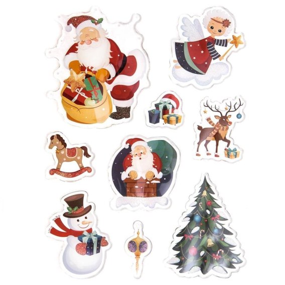 Naklejki żelowe z brokatem święta 9szt