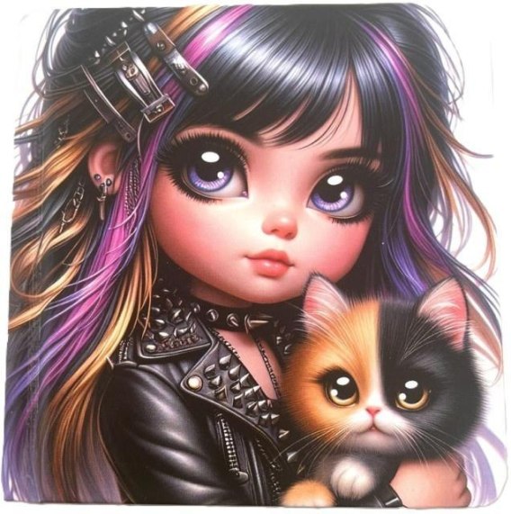Notatnik 100x100/48K gładki TW Dziewczynka z kotem