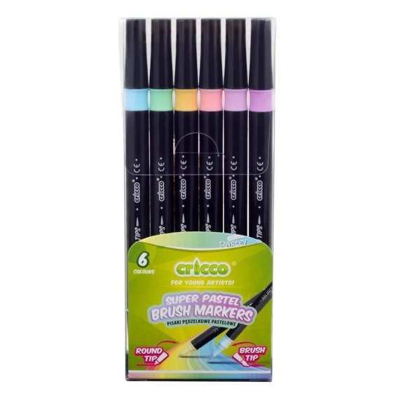 Pisaki pędzelkowe pastelowe dwustronne 6 kolorów