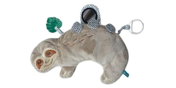 Poduszka aktywizująca Leniwiec posiada bezpieczne lusterko, w którym maluch może się przeglądać. To nie tylko fascynująca zabawa, ale także doskonałe ćwiczenie świadomości własnego ciała i rozpoznawania twarzy.