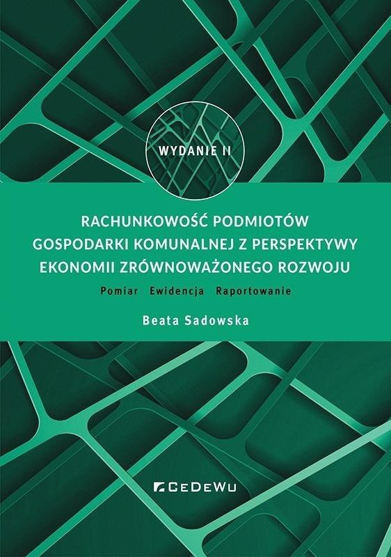 "Rachunkowość podmiotów gospodarki komunalnej z perspektywy ekonomii zrównoważonego rozwoju. Pomiar - Ewidencja - Raportowanie" to monografia adresowana do wszystkich, którzy interesują się rachunkowością, zrównoważonym rozwojem i gospodarką komunalną. Monografia obejmuje takie zagadnienia, jak: - Zrównoważony rozwój jako obszar badawczy ekonomii - Pomiar w teorii ekonomii - Realizacja funkcji informacyjnej rachunkowości - Funkcjonowanie podmiotów gospodarki komunalnej - Pomiar i raportowanie realizacji celów zrównoważonego rozwoju przez podmioty gospodarki komunalnej "Książka napisana przez Beatę Sadowską dotyczy niezwykle ważnej problematyki, jaką jest dostarczanie informacji o realizacji celów zrównoważonego rozwoju przez jednostki gospodarki komunalnej. Głównym źródłem tych informacji może być rachunkowość, która powinna dokonać pomiaru, ujęcia w księgach oraz dostarczyć informacje niezbędne szerokiemu gronu odbiorców [...]. Szczególnie jest to ważne w jednostkach, które świadczą usługi komunalne powszechnie dostępne, takie jak dostarczanie wody czy energii elektrycznej, odbiór odpadów komunalnych, dostęp do komunikacji miejskiej [...]. Ważny jest opracowany przez Autorkę indeks SUGOMAR-BS [...]. Autorka w opracowaniu wykazała się wiedzą teoretyczną i praktyczną oraz umiejętnie wykorzystała przeprowadzone przez siebie badania i studia literaturowe w rozważaniach na temat rachunkowości podmiotów gospodarki komunalnej realizującej cele zrównoważonego rozwoju". Z recenzji dr hab. Joanny Wielgórskiej-Leszczyńskiej, prof. SGH w Warszawie "Monografię dr Beaty Sadowskiej uważam za ważną teoretycznie i potrzebną praktycznie [...]. Zasługą Autorki jest stwierdzenie istnienia luki badawczej w zakresie wykorzystywania instrumentów rachunkowości do pomiaru i raportowania realizacji celów zrównoważonego rozwoju przez podmioty gospodarki komunalnej [...]. Zarówno pomysł badawczy Autorki, jak i sposób jego realizacji uznaję za oryginalny wkład do rozwoju nauk ekonomicznych [...]. Oryginalnym wkładem Autorki jest poszerzenie metodologii pomiaru efektów osiąganych dzięki realizacji celów zrównoważonego rozwoju w gospodarce komunalnej [...]. Rozprawa, jako pierwsza w Polsce i jedna z nielicznych na świecie, podejmuje teoretyczne i praktyczne rozważania nad obecnością, pomiarem i raportowaniem celów zrównoważonego rozwoju w gospodarce komunalnej. Istotnym wkładem dr Beaty Sadowskiej do nauki jest stworzenie autorskiego modelu pomiaru realizacji celów zrównoważonego rozwoju w podmiotach gospodarki komunalnej oraz opracowanie indeksu SUGOMAR-BS". Z recenzji dr hab. Bożeny Ryszawskiej, prof. UE we Wrocławiu