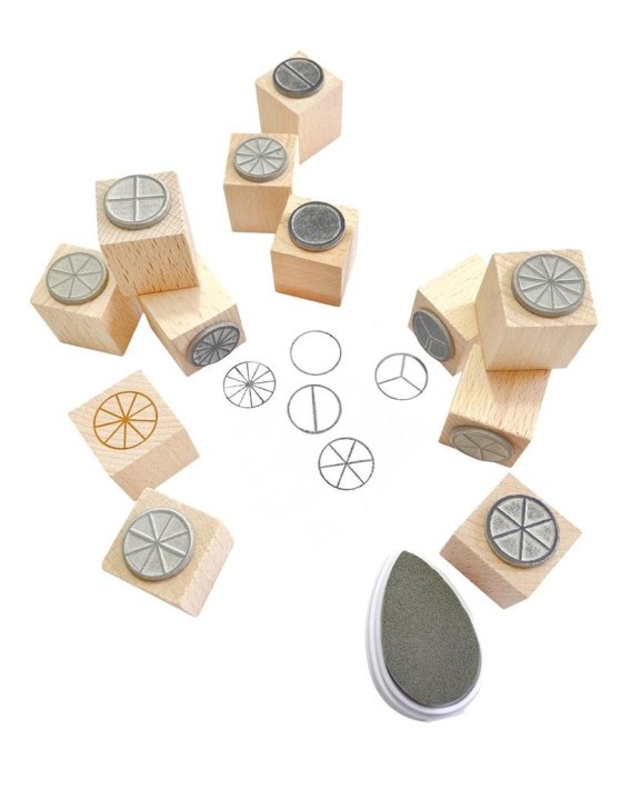 Ale to nie wszystko! Druga strona każdego stempla posiada gumowe odbicie tego samego koła z ułamkami, gotowe do zostawienia wyraźnego śladu na kartce wystarczy stemple delikatnie oprószyć dołączonym tuszem i gotowe! To doskonała pomoc dydaktyczna do urozmaicenia lekcji matematyki, interaktywnych gier edukacyjnych czy nawet domowych zabaw w liczenie.