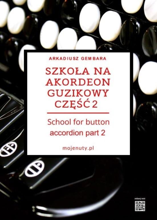 Szkoła gry na akordeonie guzikowym cz. 2, jest kontynuacją cz.1 i adresowana jest głównie do uczniów i nauczycieli szkół muzycznych I stopnia, ognisk muzycznych oraz może okazać się przydatną propozycją dla tzw. samouków. Publikacja przeznaczona jest dla tych wszystkich, którzy pragną w stopniu podstawowym i średnio-zaawansowanym opanować grę na akordeonie guzikowym z systemem typu B. Wszystkie utwory są opracowane pod względem: artykulacji palcowej, dynamiki, miechowania, artykulacji, także nauczyciel i uczeń dostaje gotowy produkt do realizacji. W części drugiej poruszone i omówione są szerzej zagadnienia typu: