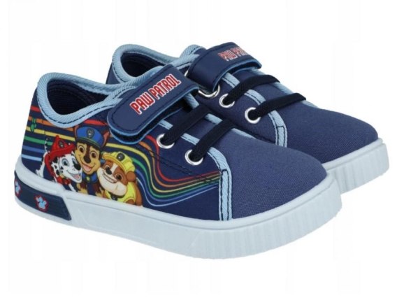 Stylowe trampki dziecięce z uwielbianymi bohaterami Psi Patrol to doskonały wybór dla każdego małego fana przygód Marshalla, Chase'a i reszty ekipy! Świetnie sprawdzą się na co dzień - do przedszkola, szkoły czy na spacer. Buty utrzymane są w granatowej kolorystyce z jasnoniebieskimi akcentami, dzięki czemu prezentują się nowocześnie i efektownie. Po zewnętrznej stronie cholewki znajduje się nadruk postaci z bajki Psi Patrol, co nadaje obuwiu wyjątkowy charakter licencyjny. Biała podeszwa została wyposażona w wbudowane świecące diody LED, które migają podczas chodzenia, przyciągając uwagę i sprawiając dziecku jeszcze więcej radości. Dodatkowo z tyłu podeszwy znajduje się ozdobny gumowy pasek z motywem psich łapek w kolorze granatowym. Trampki zapinane są na praktyczny rzep, który umożliwia szybkie i samodzielne zakładanie oraz zdejmowanie obuwia. Dodatkowo zastosowano elastyczną gumkę w kolorze granatowym, która imituje sznurówki i automatycznie dopasowuje się do stopy, zapewniając lepszą stabilizację i komfort noszenia. Obuwie zostało wykonane z lekkich i wygodnych materiałów, dzięki czemu idealnie sprawdzi się w codziennym użytkowaniu - bez zmęczenia i dyskomfortu Długość wkładki: 19 cm
