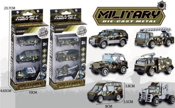 Samochody doskonale nadają się do rozwijania wyobraźni i zdolności motorycznych. Zestaw to doskonałe uzupełnienie każdej kolekcji zabawek militarnych lub pierwszy krok do jej stworzenia. Jest to również świetny pomysł na prezent dla każdego chłopca lub dziewczynki fascynującego się wojskiem i pojazdami. W zestawie znajdują się trzy różne modele. Zbierz je wszystkie i ciesz się pełną kolekcją militarnych pojazdów Die-Cast Metal.